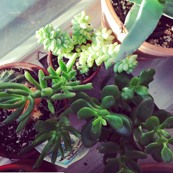 These days, we’re living near Logee’s, a nursery that specializes in rare and tropical plants. They also happen to have a bunch of succulents, which I specialize in (because cats tend to leave them alone, and they thrive on my neglect). During my first trip to Logee’s a few months ago, I displayed a great deal of restraint and bought only one plant–an adorable little burro’s tail.